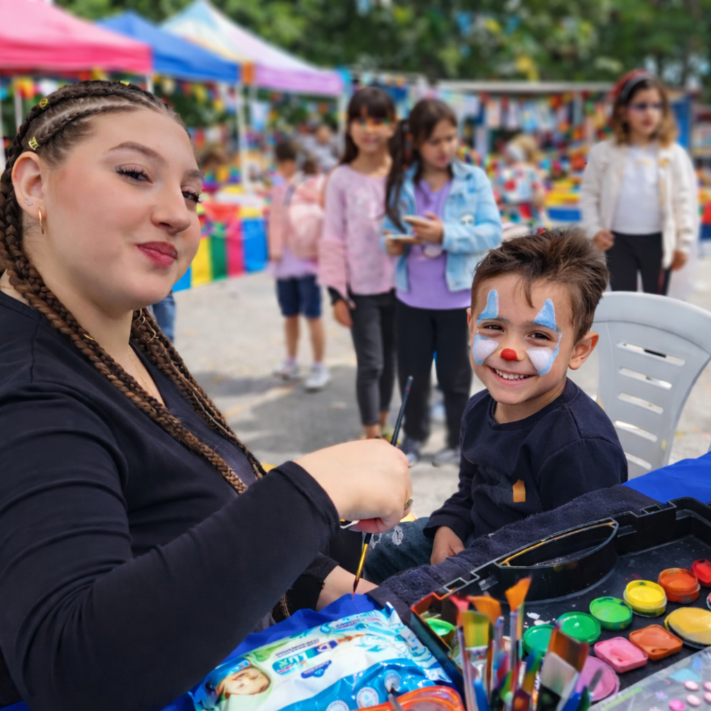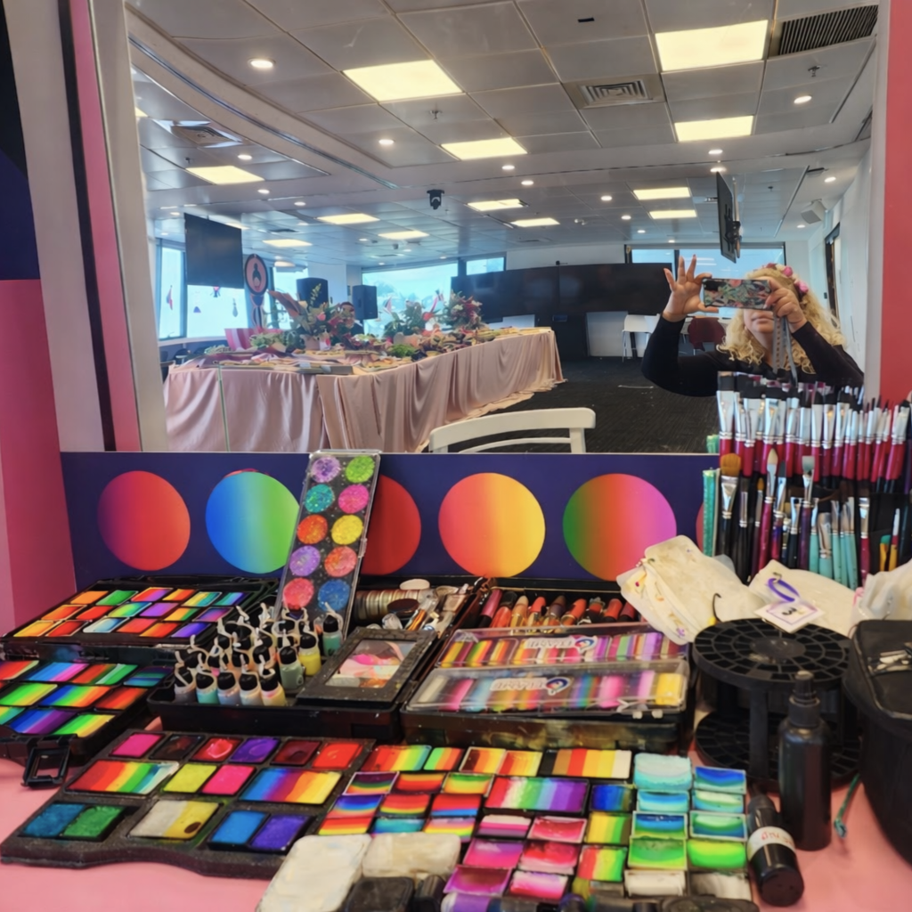 הוסיפו נגיעה של קסם וצבע לאירוע שלכם עם עמדת ציורי פנים מעוצבת, שמושכת את העין כבר מהרגע הראשון.